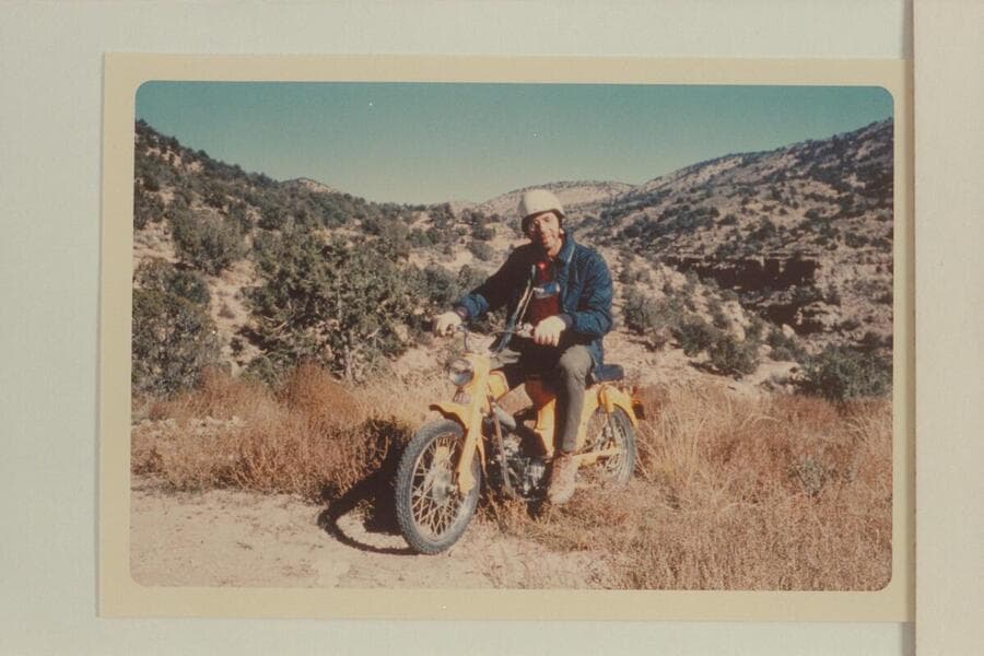 Jorgen Visbak on the Honda used for ferrying the station wagon between Monument Point and Jumpup Canyon