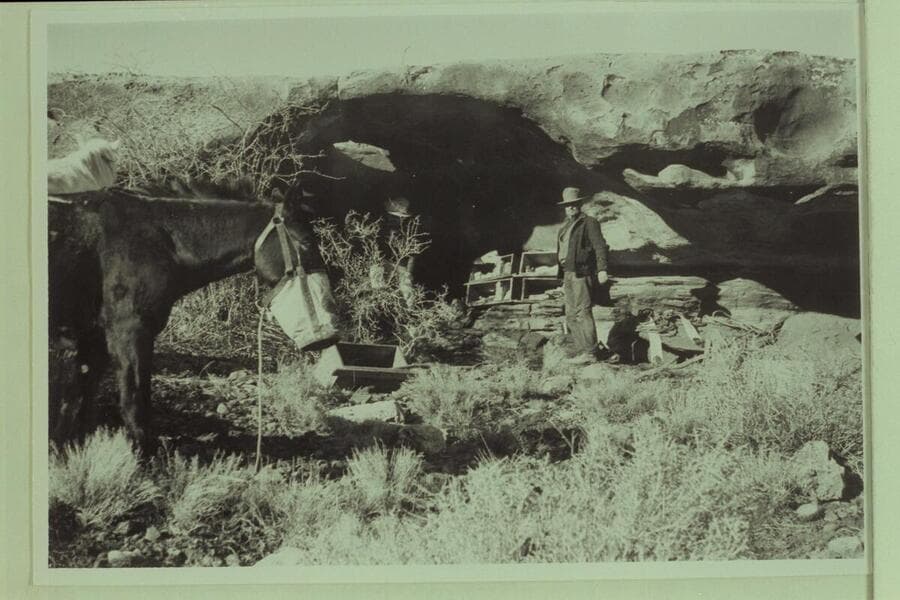 In camp. Opening in back of cave appears to establish a small arch