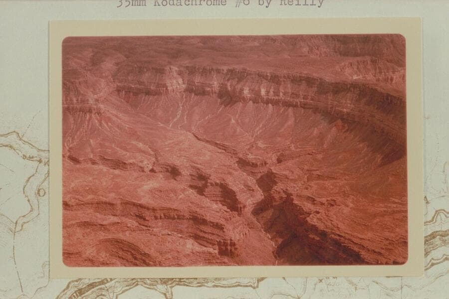 Downriver at Olo Canyon. There is a cairn or granary at right of where creek falls into pool
