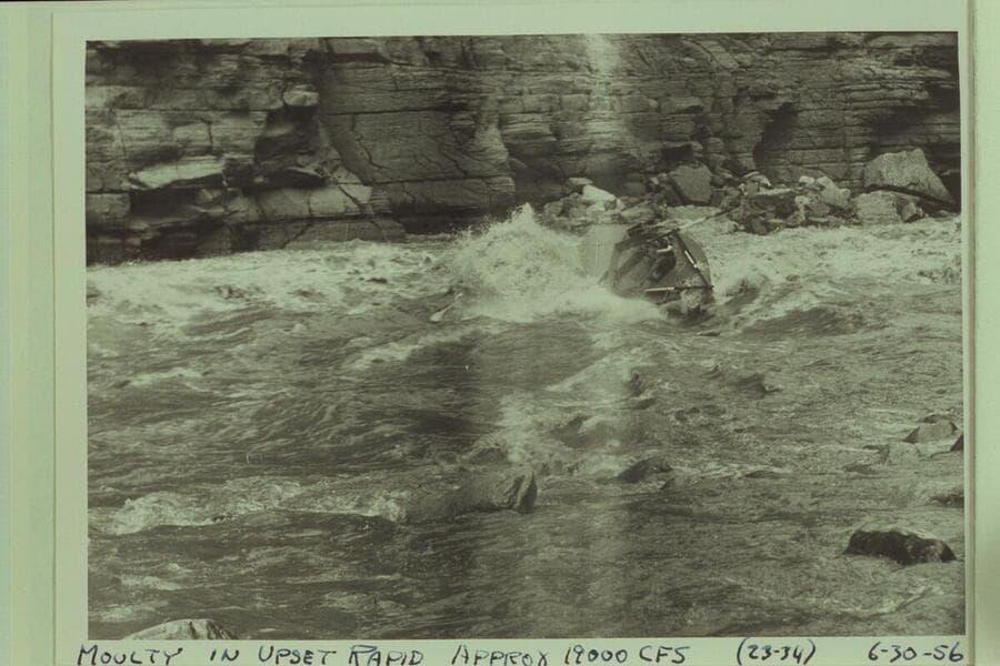 Guy Taylor Jr., Moulty Fulmer and Norm Day in the "GEM"; Mile 52.5 at foot of Nancoweap Rapid