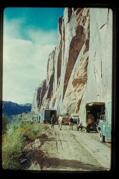 Filming of "The Colorado River Story" by a Disney crew. Camp site below Moab