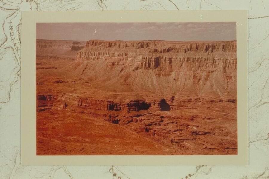Jorgen Visbak in camp below Ukwalla Point. Xmas card of 1972. Message on back of print