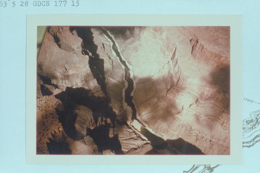 Down Grand Canyon below the rim to Vulcan Rapid from Mile 177 1/2