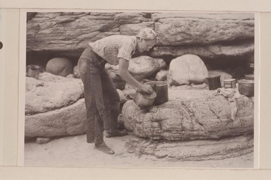 Millie Baker scrubs the pots at camp at mouth of Supai