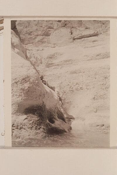 Travertine encrustations at mouth of Supai Creek. Margaret Marston and Joe Desloge climbing