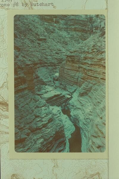 Across the Grand Canyon at mouth of National Canyon. By Butchart after he had reached this point via the bench above the left bank of National Canyon