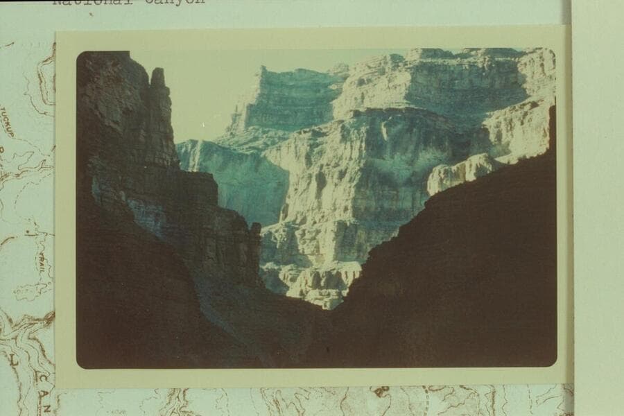 Across the Grand Canyon at mouth of National Canyon. By Butchart after he had reached this point via the bench above the left bank of National Canyon