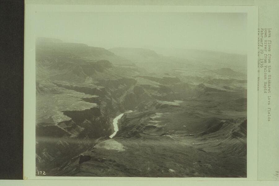Lava flows from the Uinkaret lava fields. Downriver from Vulcan Rapid