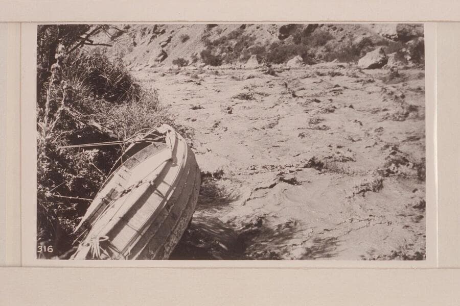 The "Marble" pulled onto left bank of Vulcan Rapid to keep it above the flood. Print from Freeman collection
