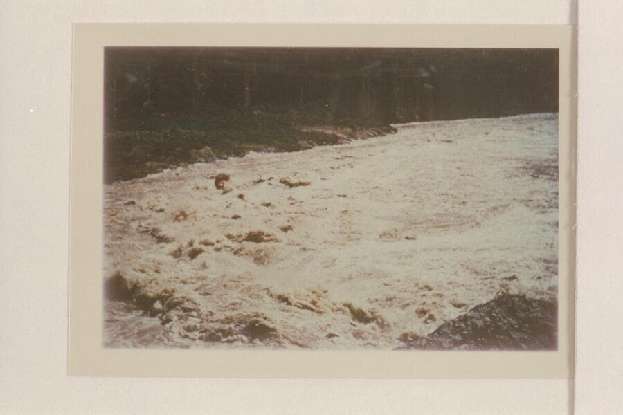 The "Marble" pulled above the flood on the left bank. Vulcan Rapid