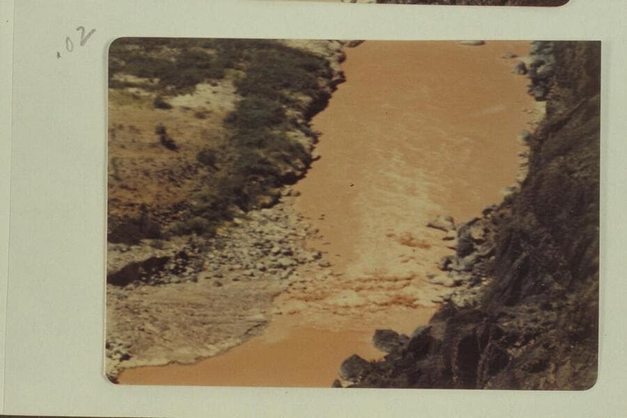 Bill Belknap's Power Wagon on The Rim, south side above Lava Falls. Jorgen Visbak stands next to the truck