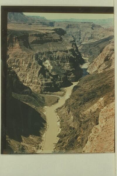 Downstream view of Prospect Canyon and Vulcan Rapid. Approximate flow: 19,000 cfs