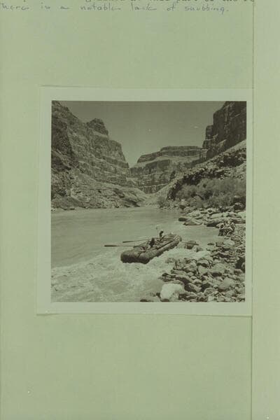 10. Beginning run of Lava Falls. Lining Pontoon No. 2. Boat: Al and Smuss. Shore: Dick, Harry, Clarke, Jack, Bruce and Doug