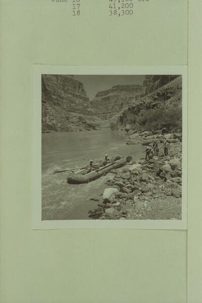 13. Lava Falls. Lining Pontoon No. 1. Boat: Bruce and Clarke. Shore: Jack, Dick, Smuss, Harry, and Doug