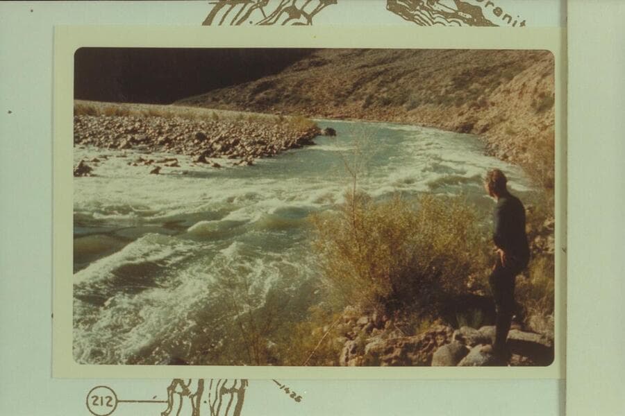 Les Jones upsetting in the rapid at Mile 209 at the right side of the island