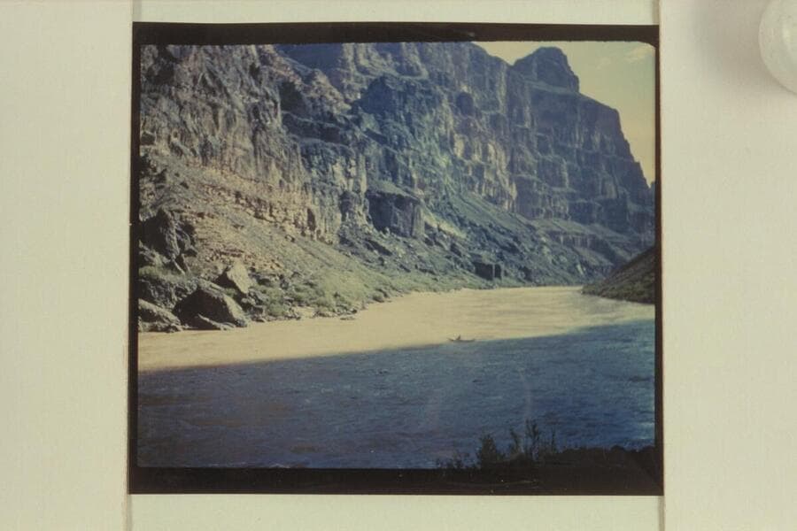 Preparation for portage of sadiron of Wright-Stavely fleet. Mouth of Prospect Canyon at Vulcan Rapid
