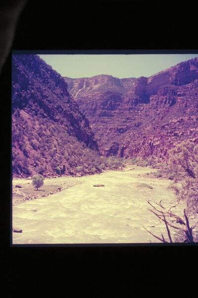 One of Hatch's pontoons bouncing rocks in lower end of Hells Half Mile