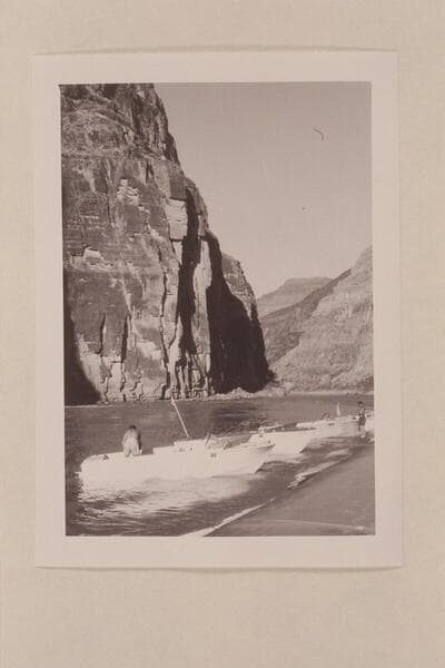Four jet boats moored at lower end of Vulcan Rapid