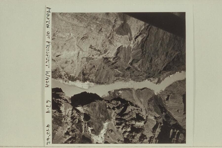 Down to mouth of Prospect Canyon from trail out from Vulcan Rapid