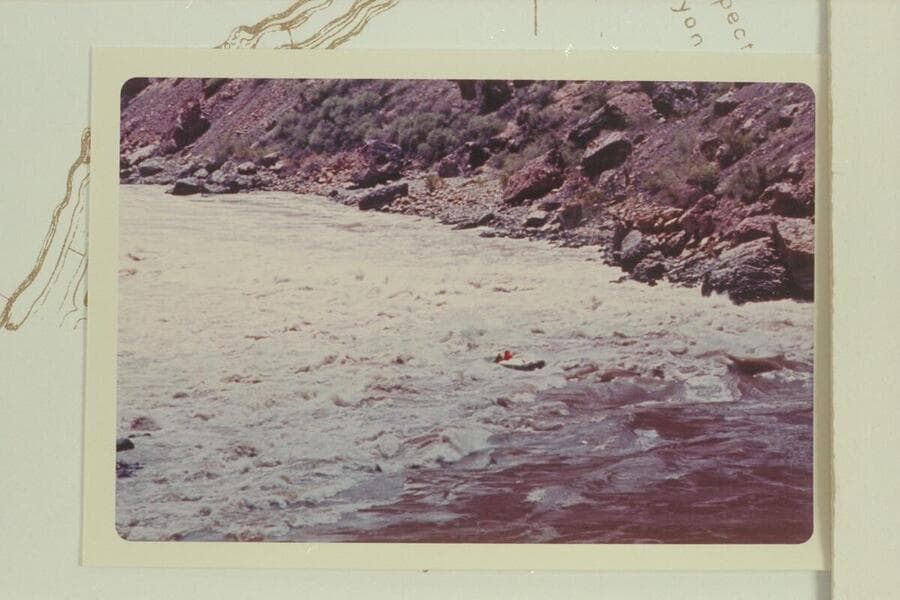 Jim Jordan swings the "Circle" to the right to stay next to the tail waves of Vulcan Rapid. Approximate gauge: 45,000 cfs