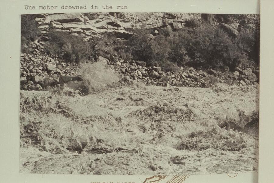 Jim-Bob Rowland's deck boat in Vulcan Rapid. One motor drowned in the run