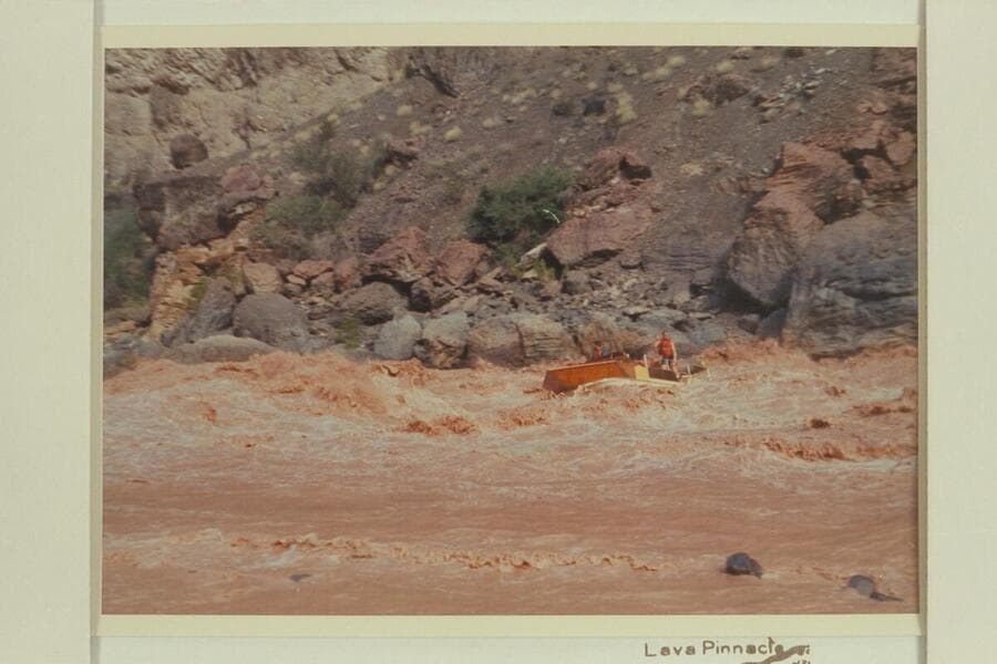 Deck Boat in Dubendorff Rapid. Jim-Bob Rowland is at the wheel. Dock Marston is piloting. Shell Wimpfen, Jim Jordan sit aft