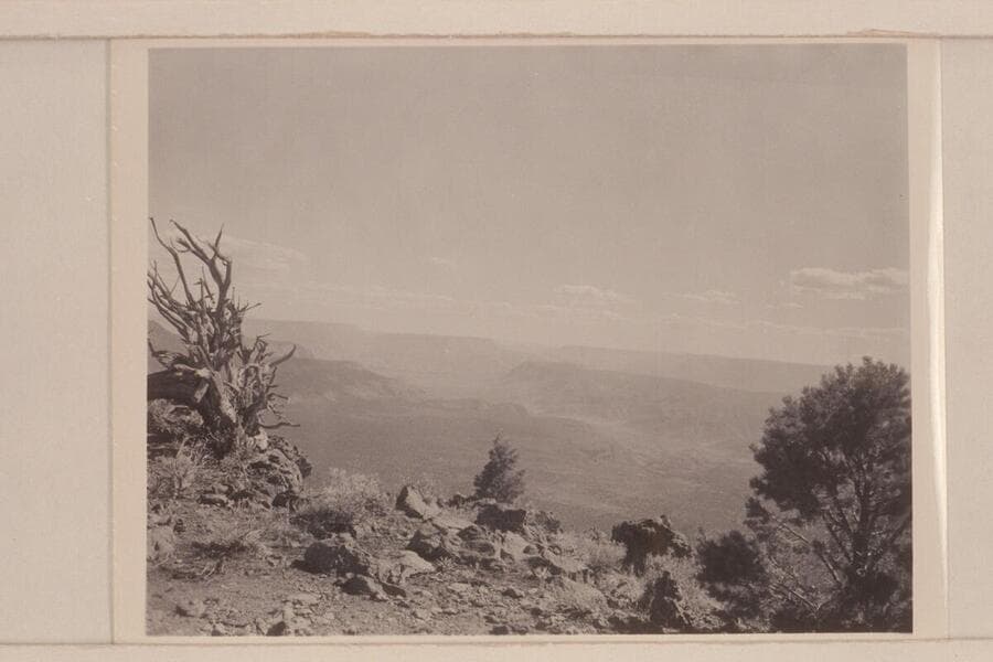 Margaret Marston looks into the lower Grand Canyon country from the top of Mt. Logan