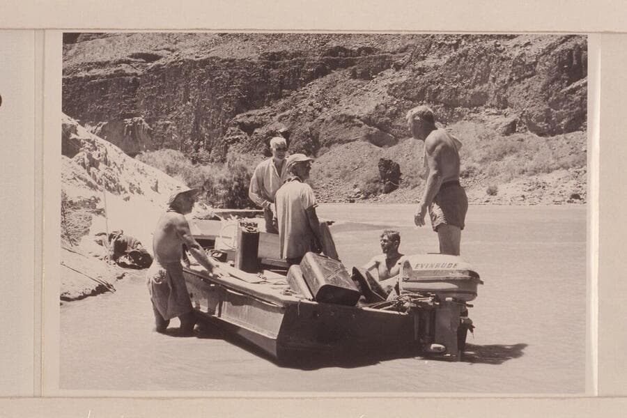 Repairs to the "Rattlesnake" after capsize in Vulcan Rapid, approximately Mile 184- Masland, Desloge, Atherton, Cutler and Sanderson