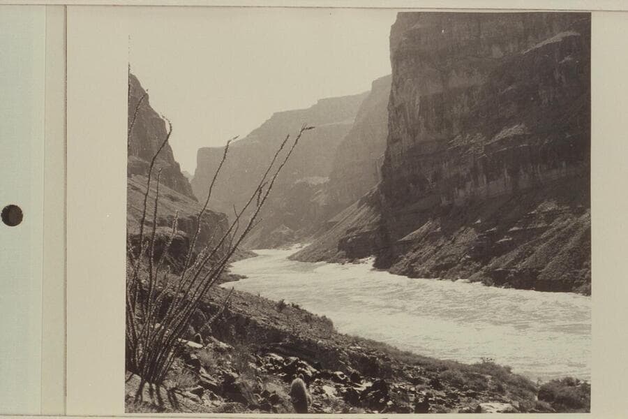 Upstream from camp at mouth of Whitmore Wash. Margaret Marston at left and Anne Desloge at center