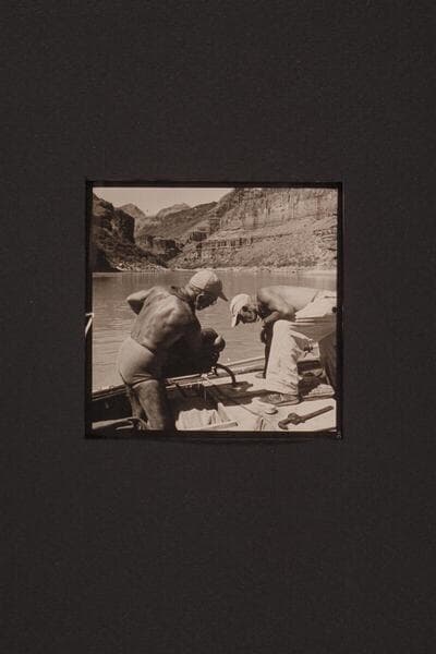 Upstream from camp at mouth of Whitmore Wash. Margaret Marston at left and Anne Desloge at center