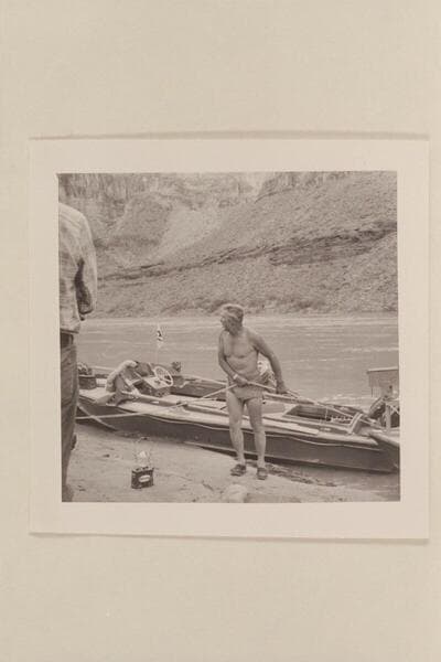 Rod Sanderson mooring the "Bootoo" at camp near Mile 210