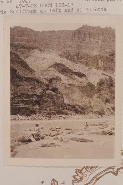Upstream from camp at mouth of Whitmore Wash. Margaret Marston at left and Anne Desloge at center