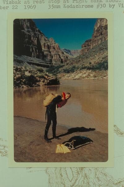 Homer Morgan and Jorgen Visbak drifting into rapid at about Mile 212.15