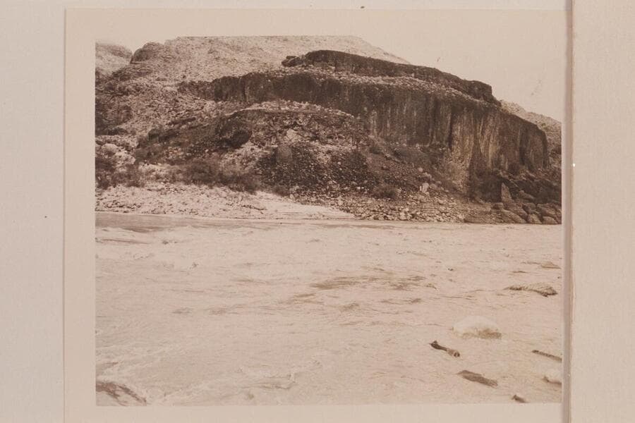 Upstream from mouth of 214 Mile Canyon. Basalt remnant at left