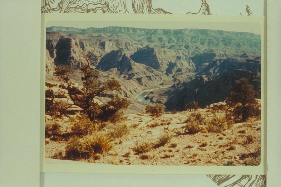 Down and across the river from mouth of 209 Mile Canyon to Granite Park Canyon