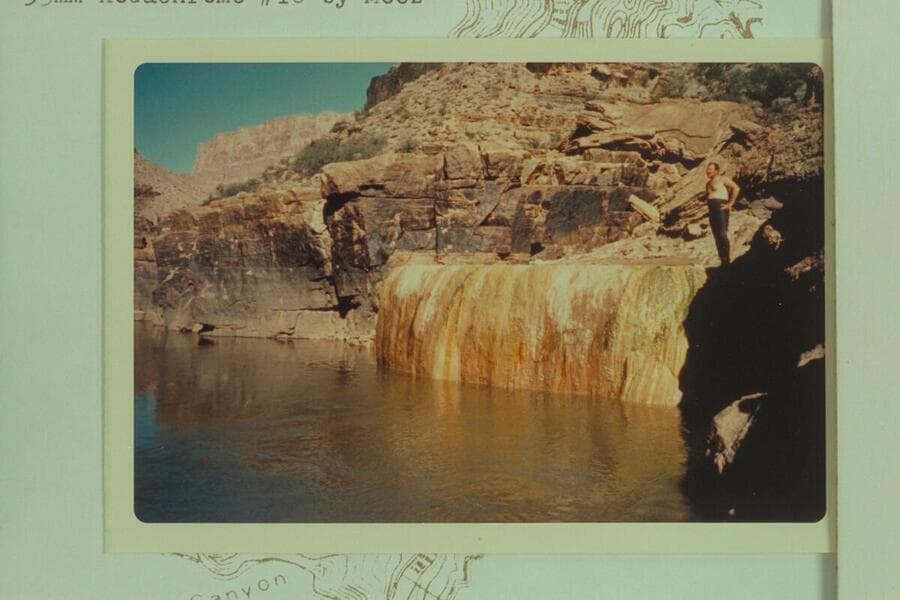 Jorgen Visbak in a small inflated craft at Pumpkin Spring, Mile 212.8 left bank