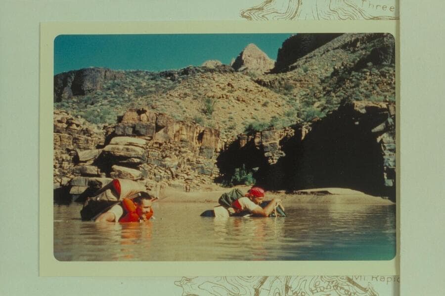 Floating through 217 Mile Rapid on air mattresses during trip from Mile 209 to Separation Rapid