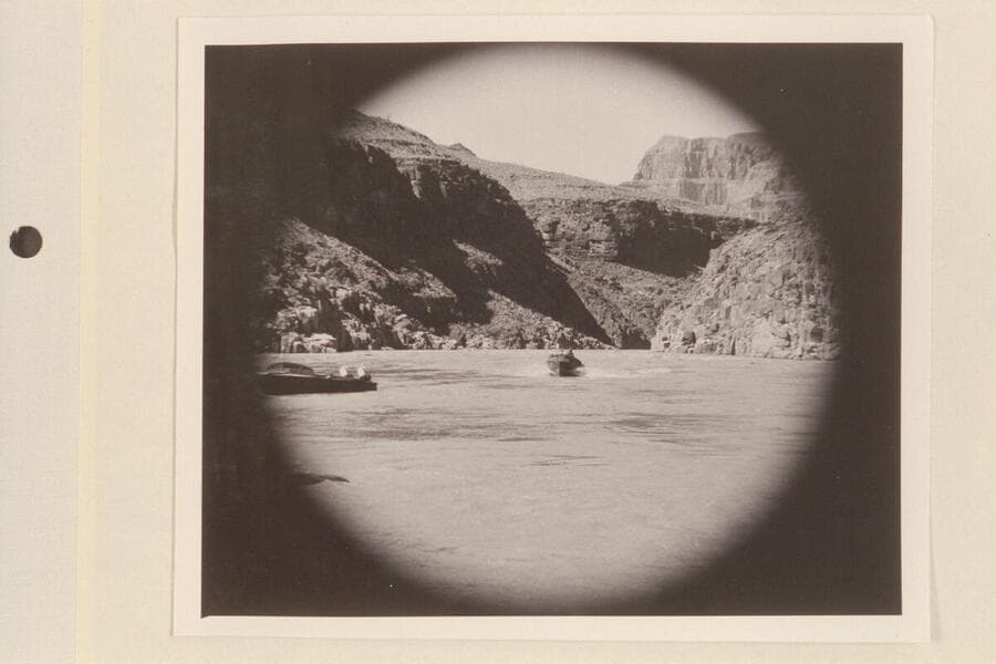 The "Rattlesnake" with the "Bootoo" behind her. Mile 217 Rapid. Approximate gauge: 90,500 cfs