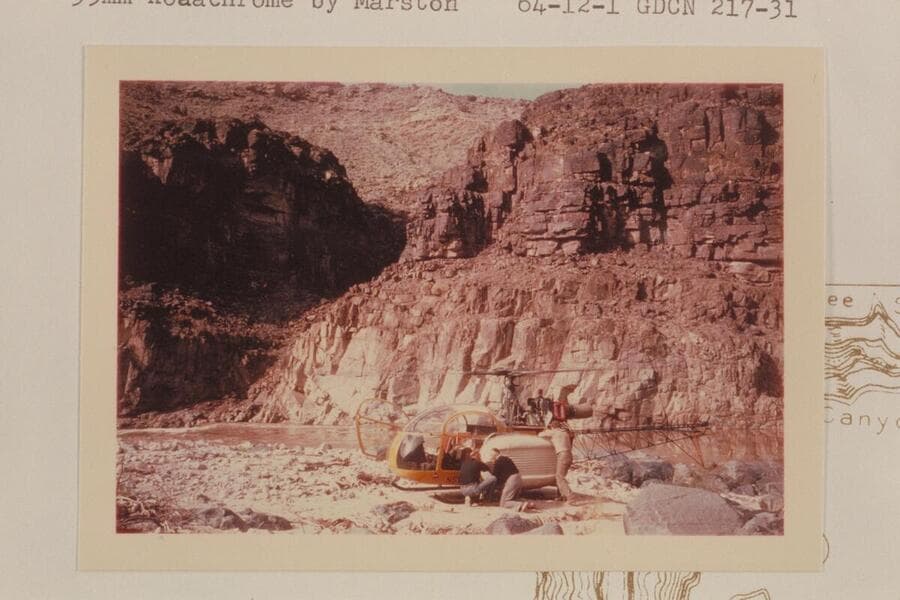 Chopper bringing in crew and equipment including a Sportyak to 217 Mile Rapid