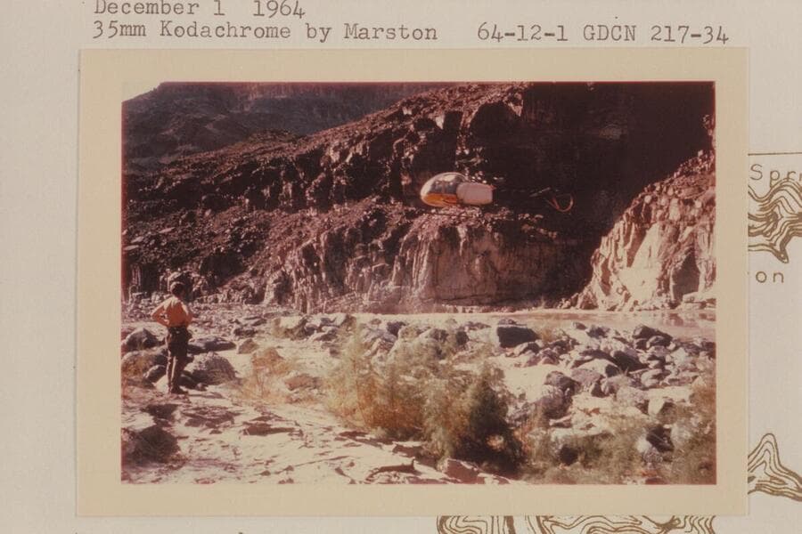 Chopper bringing in crew and equipment including a Sportyak to 217 Mile Rapid