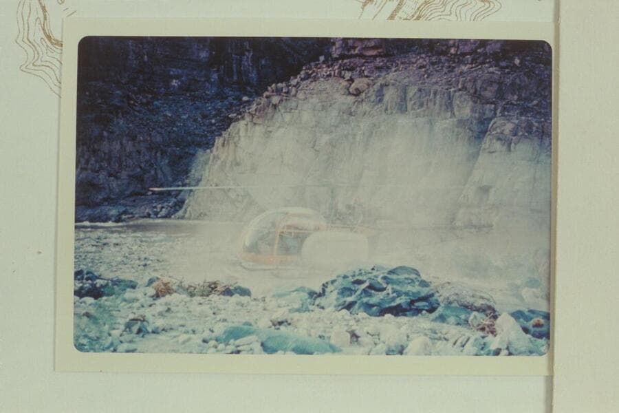 Helicopter on the beach at 217 Mile Rapid. Reconnaissance of Wilding, Inc