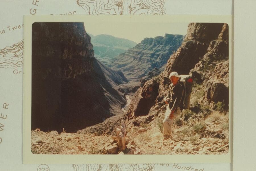 Cairn to the west and about 100' up from the bottom of the canyon at the head of the big drop in Trail Canyon. It is 1/2" south of 35 degrees 52' 30" on Diamond Peak Quad