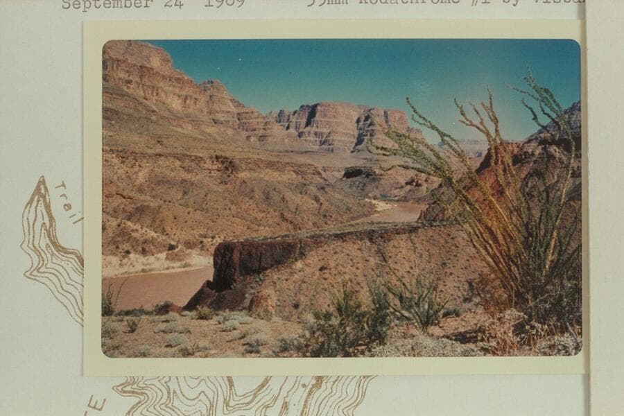 In the river after embarking from 222 Mile Canyon with lava remnant in background