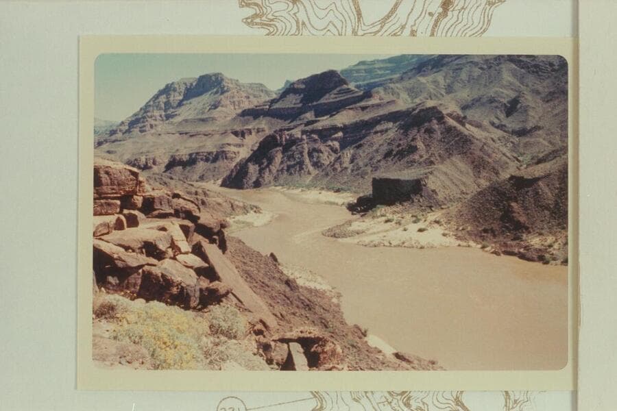 Two of the float party at Mile 221.5. Lava remnant at left bank of balloon