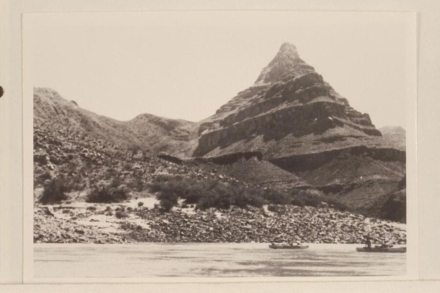 The "Dock" cruising up Grand Canyon at about Mile 223. Diamond Peak is just right of center