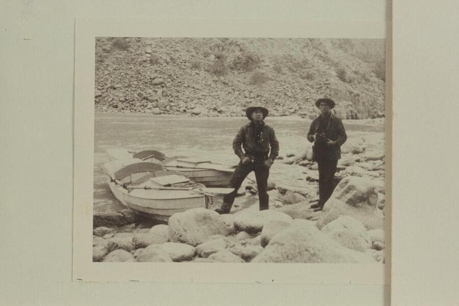 John and Bill Nelson at Diamond Creek. Kolb boats at the shore