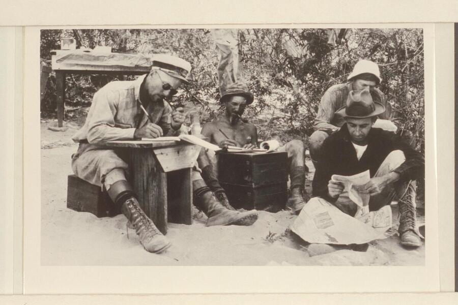 Office work at Diamond Creek. Col. Claude H. Birdseye and his cousin Roger Birdseye