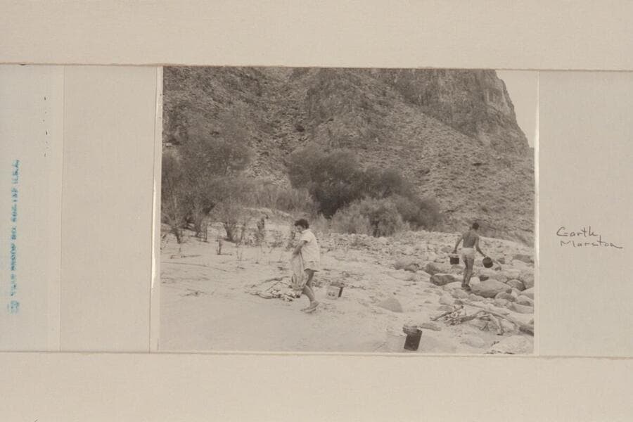 Rod Sanderson is briefed by Marston for the run from Diamond Creek to the head of Lake Mead. Diamond Creek Camp