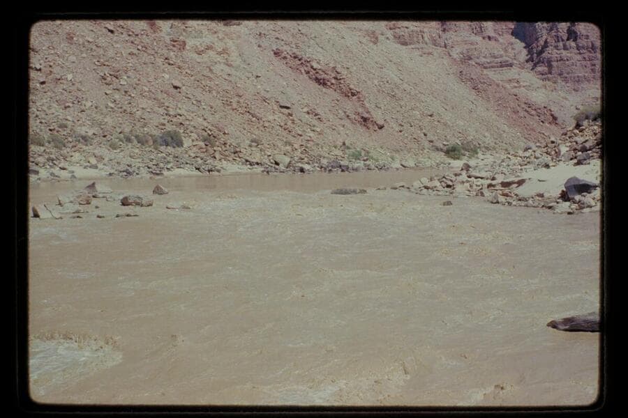 Packing the Sportyaks at camp at Mile 209.6. Rapid #6 is upstream