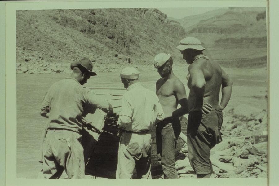 Lint, Freeman, and Kolb looking over Sockdologer. Bright Angel gauge: 33,400 cfs